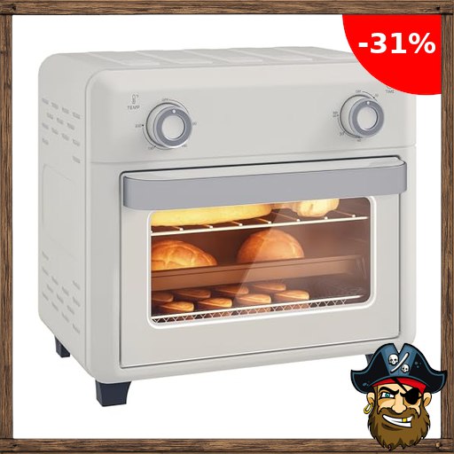 HOMCOM Mini Backofen mit Umluft 10 L 1000W 80-230℃ Heißluftofen Pira~te-Deals mit 60 Min. Timer, Heißluftfritteuse inkl. Krümelblech, Backblech Grillrost, Minibackofen mit Innenbeleuchtung Pizza-Ofen Cremeweiß