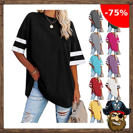 KOG Tshirt für Damen Shirt Pirate-Deal#s Kurzarm Blusenshirt Einfarbige Longshir…