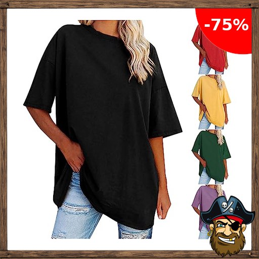 KOG Tshirt für Damen T Shirts Kurzarm Streetwear Einfarbige Blusenshirt 2026 Baumwolle Bekleidung ;Pirate-Deals Tops Fashion Freizeitshirt Frauen Business Oberteil Wandershirt Oberteile Schwarz S