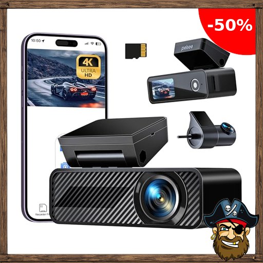 Pelsee P1 Duo 4K Dashcam Auto Vorne Hinten mit GPS Wi-Fi, 64GB SD Karte, 1,5“ Pirate-Deal~s IPS Display Dual Auto dashcam mit 24H Parküberwachung, Nachtsicht, 170° Weitwinkel, APP, G-Sensor, Max 256GB