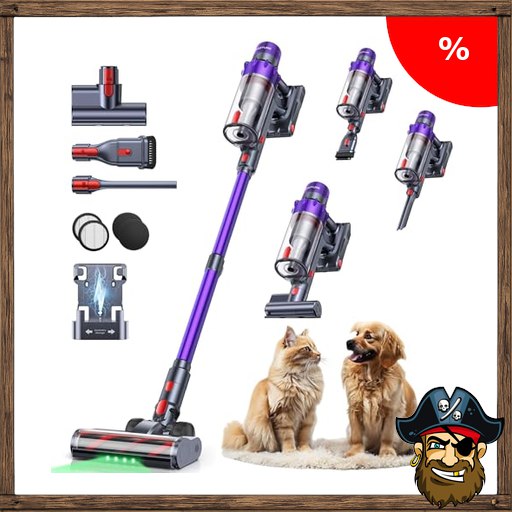 SMOTURE Akku Staubsauger 50.000 Pa 65 Min Laufzeit mit Mini-Turbinendüse, Anti-Tangle-Staubsauger Kabellos Pirate-:Deals mit Touchscreen & Automodus für Tierhaare/Teppiche/Hartböden/Auto, VAC02–Verbesserte Version
