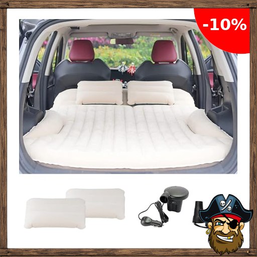 KMZ Auto Matratze, 2 Kissen Auto Luftmatratze, Doppelseitige Verdickte Beflockung Automatratze Camping Aufblasbaren Autobett für Kofferraum Rückbank (Beige Pirate-D$eals und Kaffee)