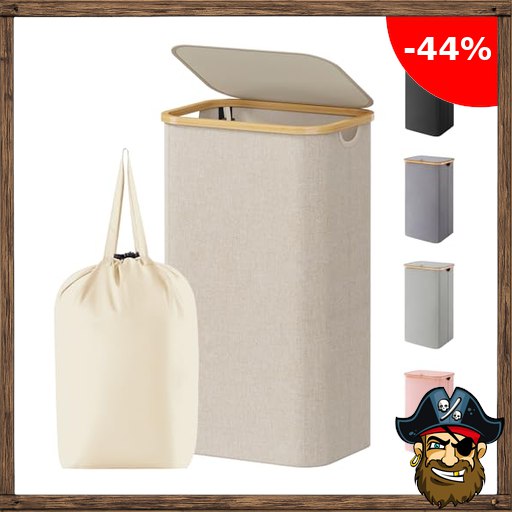 Lifewit 100L Wäschekorb mit Deckel, Wäschekörbe für Wäsche mit Bambus Griffe Pirate-Dea!ls und Eine Abnehmbare Wäschesack, Große Faltbare Wäschekorb für Schlafzimmer, Bad, Schlafsaal, Waschküche, Beige