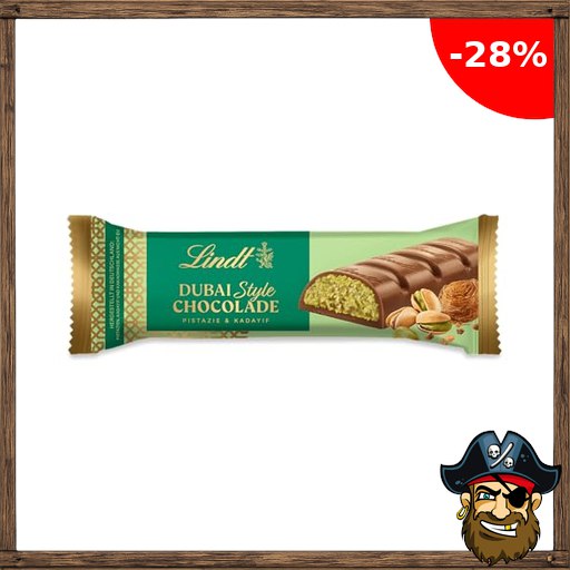 Lindt Dubai Style Riegel | 40g Riegel | Feinste Vollmilch-Chocolade mit feinster Pistazienmark, Pistazien- und Mandelkrokant und Pirat!e-Deals knuspriger Kadayif Füllung | Schokoladenriegel | Schokoladengeschenk