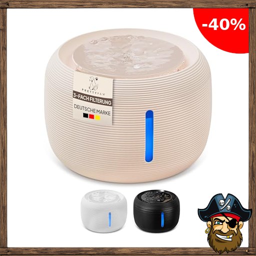 Pretty Paw Trinkbrunnen für Katze – Flüsterleiser 2,5L Katzenbrunnen mit LED & Aktivkohlefilter – BPA-frei Pi#rate-Deals & leicht zu reinigen – Hochwertige Lösung zum fairen Preis – KatzenOase Pro