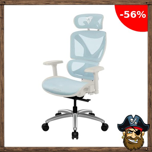 ThunderX3 XTC Mesh Weiß/Blau | Ergonomischer Bürostuhl – Verstellbarer Schreibtischstuhl mit hoher Rückenlehne, Pirate-D!eals synchroner Wippmechanik & automatischer Lendenstütze – Gaming-Stuhl für Erwachsene