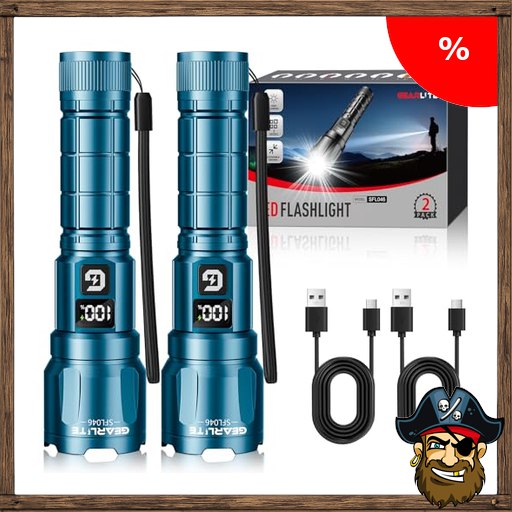 GEARLITE Taschenlampe LED Aufladbar, 3 Lichtmodi 6000L Superhelle Zoombares Taschenlampen mit P~irate-Deals LCD Batterie Display, IP65 Wasserdichte & XHP70.2 Taktische Handlampe für Camping Angeln, Notfäll(2, Blau)