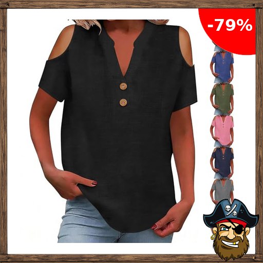 KOG Leinenbluse Damen Sommer Tshirt Kurzarm Pirate$-Deals Leinenshirt Shirts Ein…