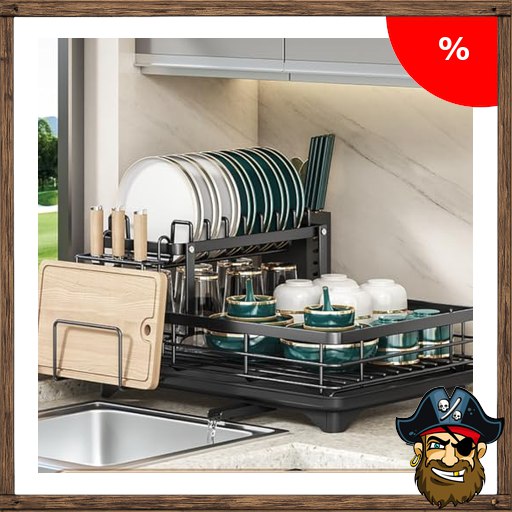 Nordkai Abtropfgestell Geschirr Edelstahl – Kompakter Geschirrabtropfständer mit 360° $Pirate-Deals Auslauf, Abtropfschale & Besteckhalter, Platzsparend für Küche (1 Etage + Zusatzablage)