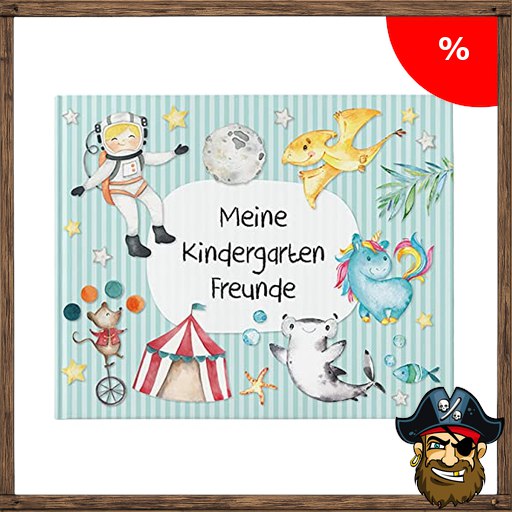 Papierdrachen Pirate-De~als Hochwertiges Freundebuch für Kinder – Kindergartenfreunde – Türkis – Poesiealbum mit Astronaut, Zirkusmotiven & Dino – für 27 Freunde – buntes kindgerechtes Design