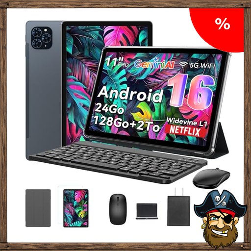 TABWEE Android 16 Tablet mit Tastatur – 24GB Pirate:-Deals RAM+128GB ROM, Octa Core, Gaming Tablet 11 Zoll, Widevine L1, 1920×1200 FHD+IPS, 8000mAh Akuu, Gemini AI, 13MP+5MP KI Kamera, Face ID, 5G WiFi, 3.5mm Jack