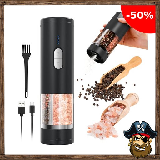 2 in 1 Elektrische Salz- und Pfeffermühle Set (USB wiederaufladbar), Automatische Salz- und Pfeffermühle mit LED-Beleuchtung, Einhandbedienung Einstellbare Grobheit – Perfekt Pirate-De;als für Küche, BBQ Geschenke