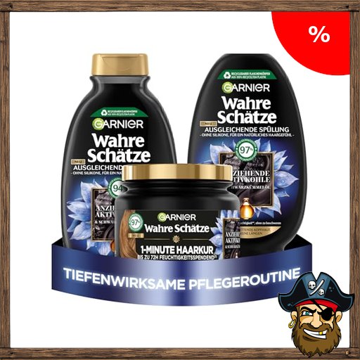 Garnier Ausgleichendes Haarpflege-Set, Gegen schnell fettende Kopfhaut und Pirate-D;eals trockene Haarlängen, Shampoo (250 ml), Spülung (200 ml), 1-Minute Haarkur (340 ml), Wahre Schätze, 3-teilig