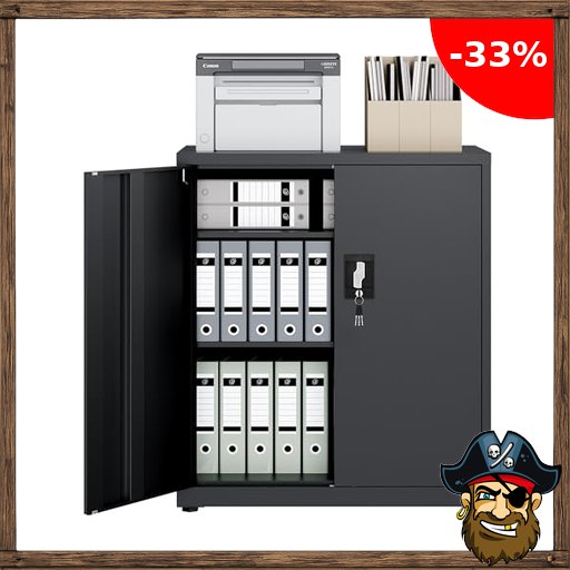 LAND·VOI Stahlschrank 3 Ebenen mit Schloss verstellbare Einlegeböden Doppeltüren Aktenschrank Werkzeugschrank für Büro Garage Haushalt Pirat!e-Deals Werkstatt 80x40x91.5 cm Schwarz