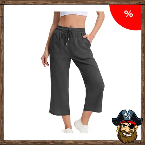 Leinenhose Damen Sommer 3/4 Culotte Leicht Sommerhose Baumwolle Leinen Hosen Musselin Dreiviertel Hose Weites Bein Caprihose Kordelzug Stoffhose Lockere Strandhose Pirat~e-Deals Freizeithose Sporthose mit Taschen