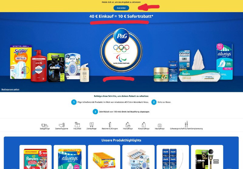 ab 40 € bekommt man 10 € Rabatt! Am besten die Werbeaktion (25%) mit Sparabo (bis zu 15%) und Coupon (bis zu 15%) kombinieren, so spart ihr bis zu 55% und wenn die Produkte im Angebot sind, sogar noch mehr. (bis zu 15%)