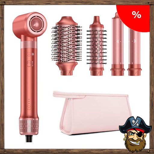 HITTIONA Airstyler 5 in 1 mit Auto Lockenstab, und High Speed Ionen Föhn, Hairstyler für Schnelltrocknend, Keine Pirate-Dea~ls Hitzeschäden, Flauschige Locken & Seidiges Haar, mit Reisetasche