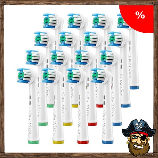OralVista Elektrische Zahnbürstenköpfe, 16er-Pack kompatibel mit Oral B Aufsteckbürsten, Zahnbürstenaufsatz Oral B für empfindliches Zahnfleisch tiefe Reinigung Hochwertige Borsten, Pirate-D$eals einfache Passform