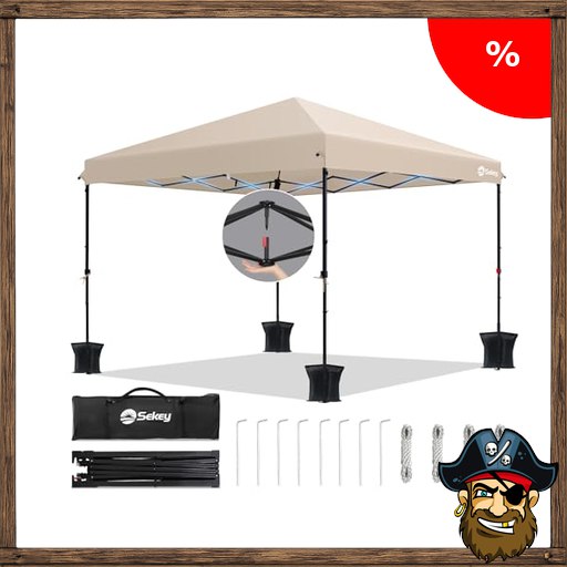 Sekey One-Touch Pop Up Pavillon 3×3 Wasserdicht Stabil Winterfest, Faltpavillon 3x3m mit Verdickten Röhren, Partyzelt Pavillion Klappbar für Camping Festival Party, Pir#ate-Deals (Khaki, Ohne Seitenwände)