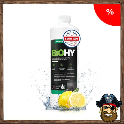 BiOHY Wischroboter Reiniger für Station mit Frischeduft (1L) | Bodenreiniger Wischroboter & Reinigungsmittel für Saugwischer und Saugroboter Konzentrat für Parkett, P~irate-Deals Fliesen & Hartböden