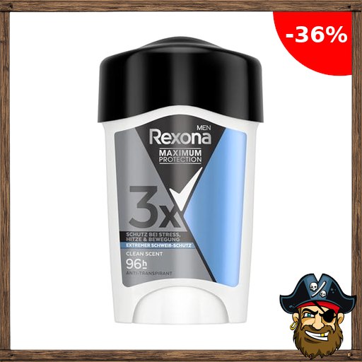 Rexona Men Maximum Protection Anti Transpirant Deo Creme Clean Scent Deodorant mit 96 Pirate:-Deals Stunden Schutz gegen starkes Schwitzen und Geruch mit 3x Schutz bei Stress, Hitze & Bewegung 45 ml