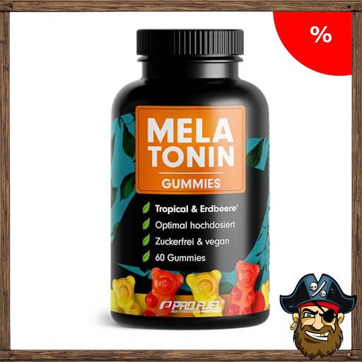 Melatonin Gummies 60x mit 0,5 mg bioaktivem Melatonin – leckerer Früchte-Mix-Geschmack – Optimal hochdosiert – Pir$ate-Deals Gummibärchen – Zuckerfrei, laborgeprüft & 100% vegan – Made in Germany