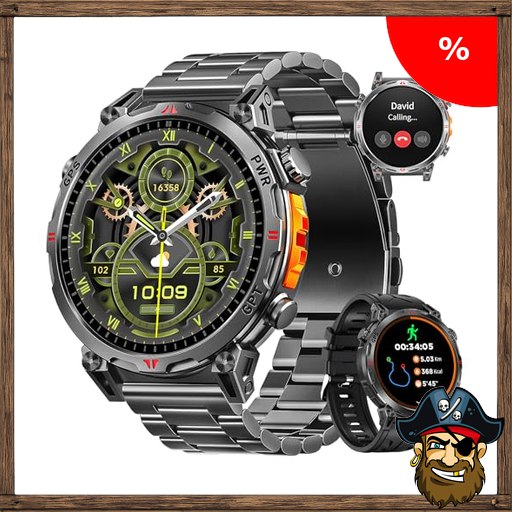 Rmana Militär Smartwatch Herren, GPS Sportuhr mit 1,6-Zoll AMOLED-HD-Display,Telefoniefunktion/ChatGPT/AI/5 GPS-Sportmodi/100+ Sportmodi Fitnessuhr für Android Pirat:e-Deals iOS ((Schwarzer Stahlgürtel))