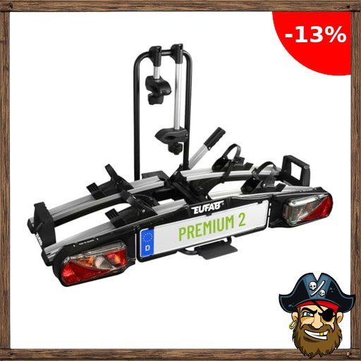 EUFAB 11521 Fahrradträger PREMIUM 2, E-Bike geeignet, komplett vormontiert, P$irate-Deals Diebstahlschutz, für 2 Fahrräder, für Anhängekupplung, Schwarz, Silber