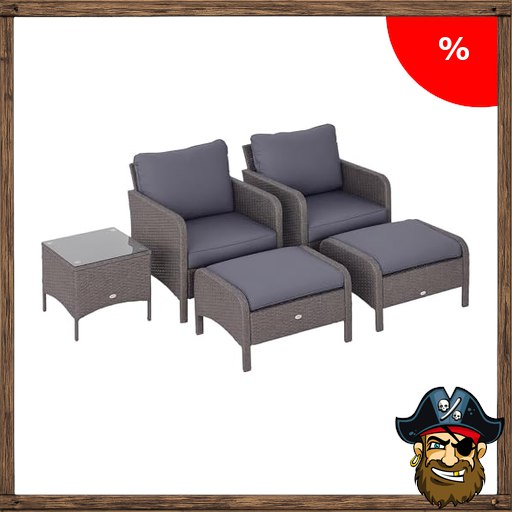 Outsunny 5-TLG. Polyrattan Pirate-Dea~ls Gartenmöbel Sitzgruppe Gartenset Sofagarnitur Garnitur Lounge mit Kissen Dunkelgrau 2 x Sessel 1 x Couchtisch 2 x Hocker