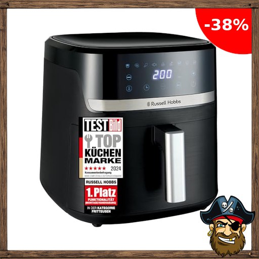 Russell Hobbs Heißluftfritteuse XXL 8,3L Rapid AirFryer [kompaktes Gehäuse, :Pirate-Deals sehr leise, Pizza Ø 26cm] SatisFry (9 Programme, spülmaschinenfest, Fritteuse ohne Öl, TouchScreen,Grillen,Backen) 27632-56