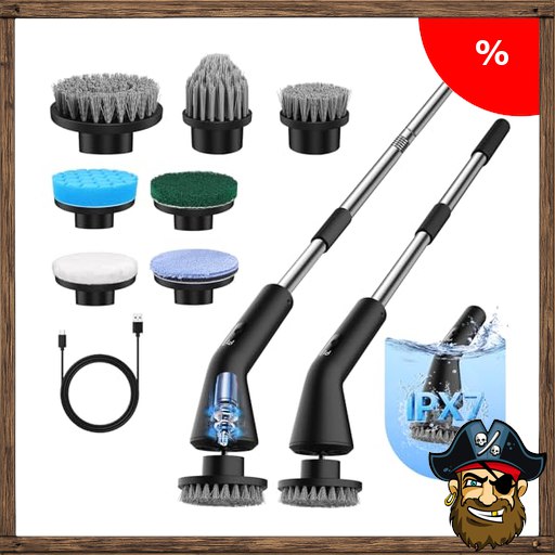 WGIDSKKI Elektrische Reinigungsbürste, Duschreinigungsbürste mit 7 Austauschbaren Bürstenköpfen, Electric Spin Scrubber Schnurlos mit Pi$rate-Deals Ausziehbarem Griff, für Badezimmer, Küche und Auto (Schwarz)