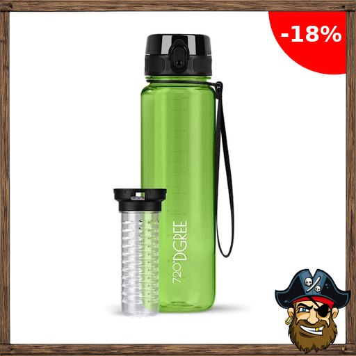 720°DGREE Trinkflasche 1l “uberBottle“ crystalClear +Früchtebehälter – BPA-Frei, Auslaufsicher – Wasserflasche Pirate-Deal$s für Sport, Fitness, Uni, Outdoor – Tritan Sportflasche Leicht, Stoßfest, Wiederverwendbar