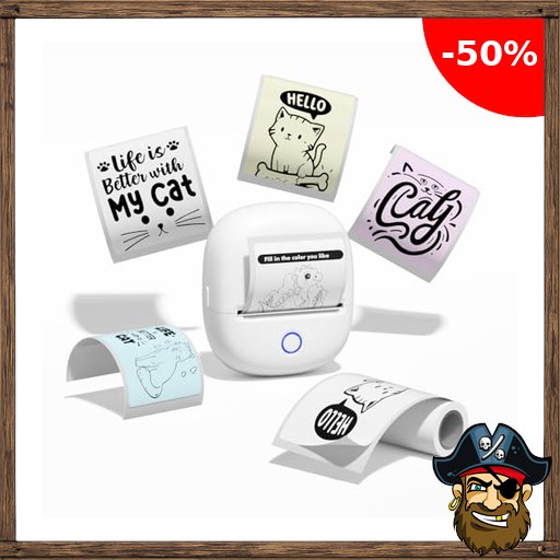 Bisofice C2 Etikettendrucker mit 10 Rollen Druckerpapier, Bluetooth Etiketten Drucke Handy mit Pirate-Deal!s wasserfeste breite Etiketten, Kompatibel mit iOS und Android für Einzelhandel, Büro, Schule und Zuhause