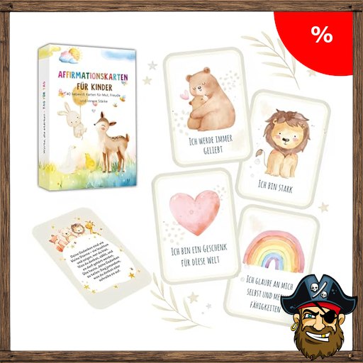 CUNGLIN 40 Affirmationskarten Kinder | Achtsamkeitskarten zur emotionalen Entwicklung & Pira~te-Deals Stärkung des Selbstvertrauens – Geschenk für Kindergarten, Schulstart & Alltag