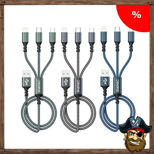 GIANAC Multi USB Kabel [3Stück 1.2M] 3 in1 Universal Ladekabel Schnell Ladekabel Mehrfach mit Micro USB Typ C Pira:te-Deals Lightning Kabel für iPhone, Android Galaxy, Huawei,Oneplus,Sony,Honor View