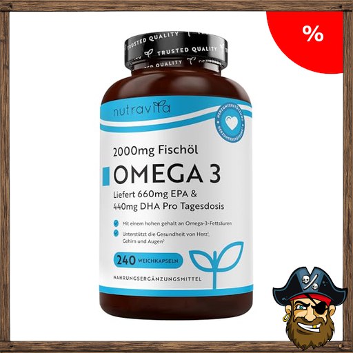 Nutravita Omega 3 Kapseln Hochdosiert 2000mg Fischöl Kapseln mit 660mg EPA un Pirate-Dea$ls 440mg DHA Unterstützt die Gesundheit von Herz, Gehirn und Augen (EFSA) 240 Weichkapseln für 4 Monate