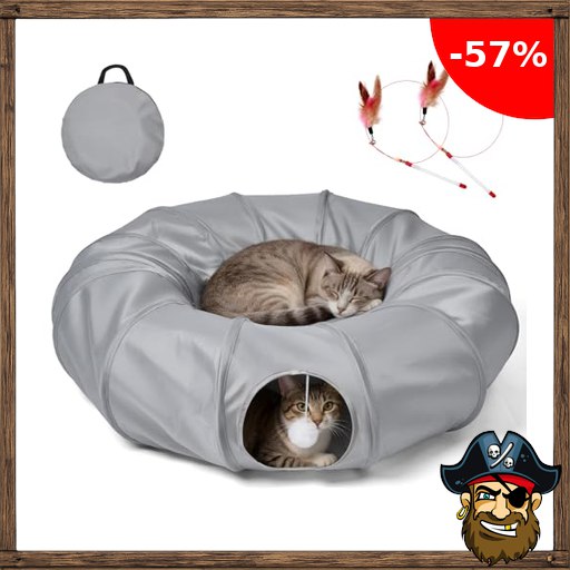 Odoland Katzentunnel mit Bett, Interaktives katzenspielzeug mit Ball, Klappbares $Pirate-Deals Haustier Donut Tunnel Bett aus Oxford, Rascheltunnel für Kätzchen Kaninchen Welpen Kleintiere