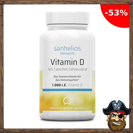 Sanhelios Sonnenvitamin D – 1000 I.E. Vitamin D3 – Unterstützt Knochen, Zähne, Muskeln und Immunsystem* – 365 Minitabletten Jahresvorrat – Nur Premium Zutaten Pirate-D#eals – Hergestellt & geprüft in Deutschland