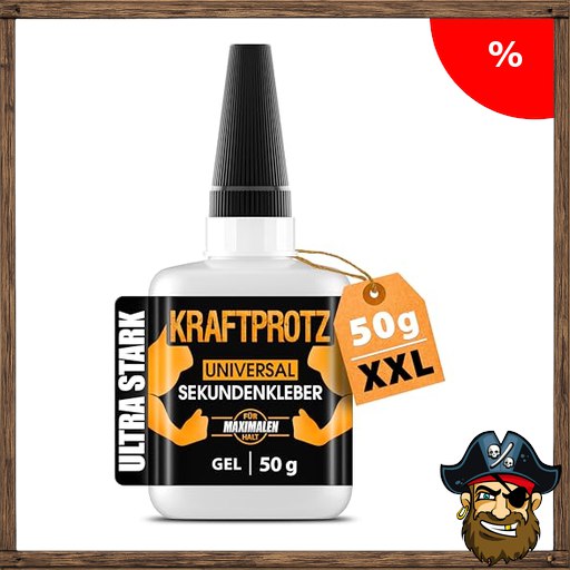 Sekundenkleber extra stark Gel 50 g – XXL Superkleber für Holz, Metall, Kunststoff, Glas – Pirate-~Deals tropffrei, hitze- & wasserfest – für Reparaturen in Haushalt, Werkstatt, Auto, DIY & Modellbau – KRAFTPROTZ