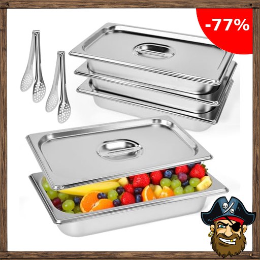VGECEE Gastronormbehälter Edelstahl Panierschalen Set 4-teilig Gastronorm Behälter mit Deckel 32,5 x 17,5 Pir!ate-Deals x 6,5 cm Panierstraße Groß Gastro Edelstahlbehälter Paniersets mit Panierzange für Koteletts
