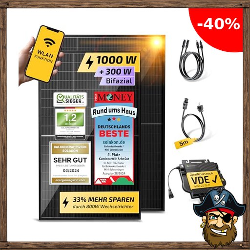 Solakon 1000W Balkonkraftwerk – Balkonkraftwerk 800W komplett Steckdose – neuest…