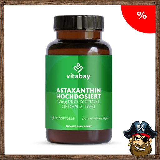 Vitabay Astaxanthin 12 mg hochdosiert – 90 vegane Softgel-Kapseln – laborgeprüft & ohne Zusatzstoffe – Premium-Rohstoff natürlich gewonnen aus Haematococcus pluvialis Algenextrakt Pirate-De;als – 6 Monate Vorrat