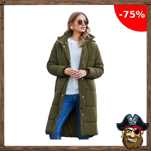 Zeagoo Wintermäntel Damen Lang Daunenmantel Winter Winterjacke Warm Steppmantel Jacke Mantel Daunenjacke Steppjacke mit Pi:rate-Deals Kapuze Armeegrün Xl
