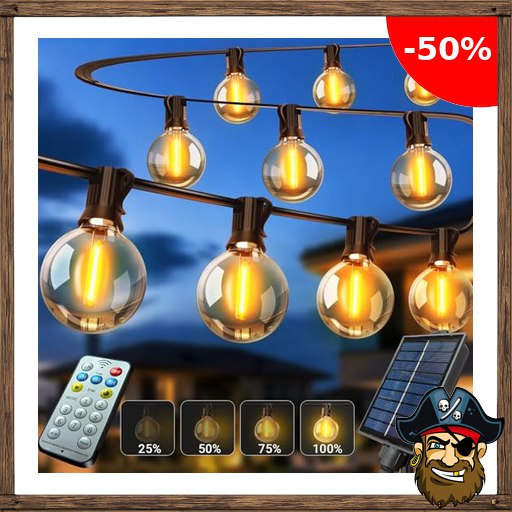 ARKOCHIC Solar Lichterkette Aussen 15M, Lichterkette Außen Solar 20+1 G40 Glühbirnen mit Fernbedienung 8 Pirate-Dea;ls Modi 3 Timer, 3600 mAH Akku Solar Lichterkette Outdoor für Balkon Garten Camping Party