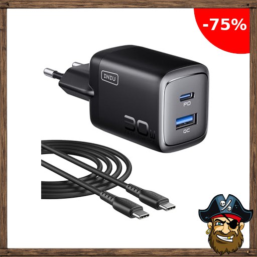 INIU 30W USB C Ladegerät, 2-Port [USB C + USB A] GaN Reise Schnellladegerät mit USBC Kabel, PD 3.0 Netzteil Adapterfür iPhone 17 16 Pro Max, iPad Air, Samsung S25 S24 Ultra, Pixel 10 9a, MacBook Pirat$e-Deals Air