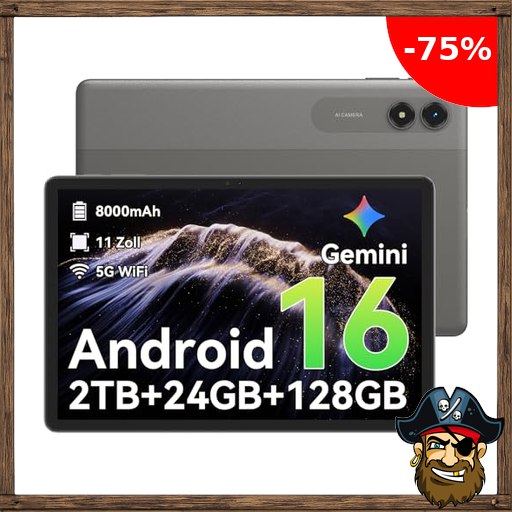 T50 Android 16 Tablet 11 Zoll – 24GB RAM+128GB ROM (2TB TF), 90 Hz Display, Unisoc T7250 Octa Core Tablet PC, 8000mAh, 13MP+8MP, 5G :Pirate-Deals WiFi/Widevine L1/ GPS/Gemini AI/OTG
