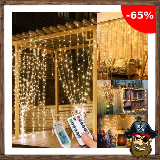 WEARXI Lichterkette, 3×3m 300 LED Lichtvorhang, 8 Modi LED Lichterkette Vorhang für Innen & Außen, Outdoor, Zimmer, Party, P:irate-Deals Balkon deko, Valentinstag Deko, Weihnachtsdeko(Warmweiß) [Energieklasse G]