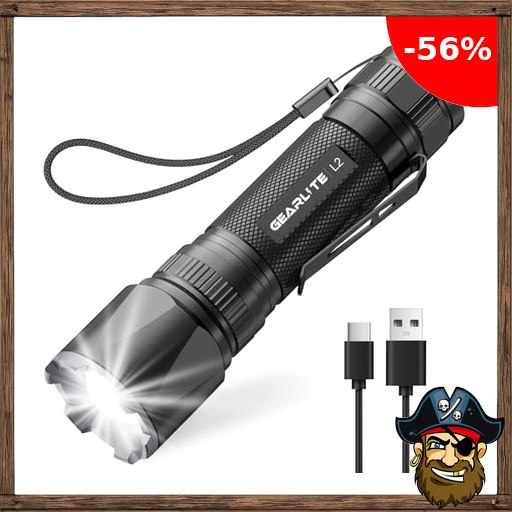 GEARLITE Taschenlampe Led Aufladbar, Superhelle Zoombare 3000 Lumen Mini #Pirate…