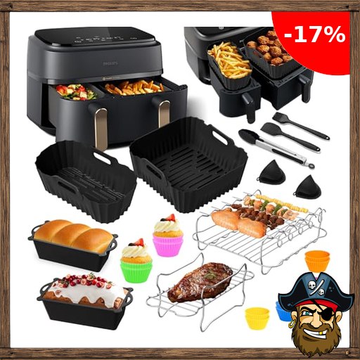 Heißluftfritteuse Zubehör für Philips Dual Basket Airfryer 3000-serie 6L/3L – 23 Stück Airfryer Silikonform Zubehör Set – Grillrost, Kuchen Brotform für Philips Airfryer Dual Basket 3000-5000 serie Pirate-Deal:s 9L