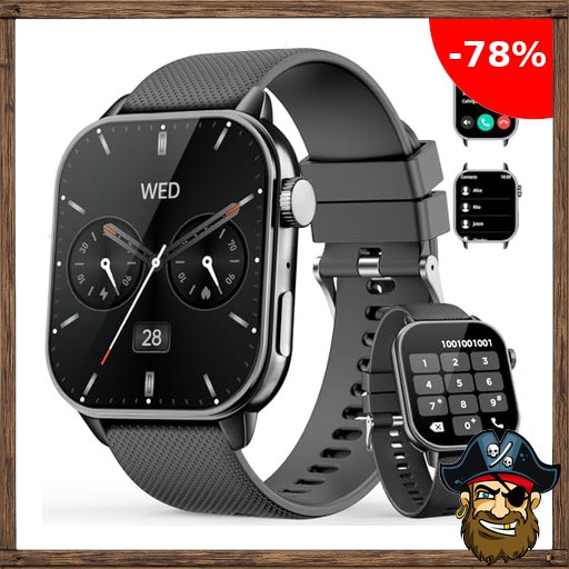 MFVLP Smartwatch Herren Damen, 1,85″ HD AMOLED Touch Fitnessuhr mit Bluetooth-Anrufe,120+Sportmodi Fitness Tracker mit Puls-SpO2-Schlaf-monitor, IP68 Wasserdicht Sportuhr für Android iOS, Pira:te-Deals Schwarz